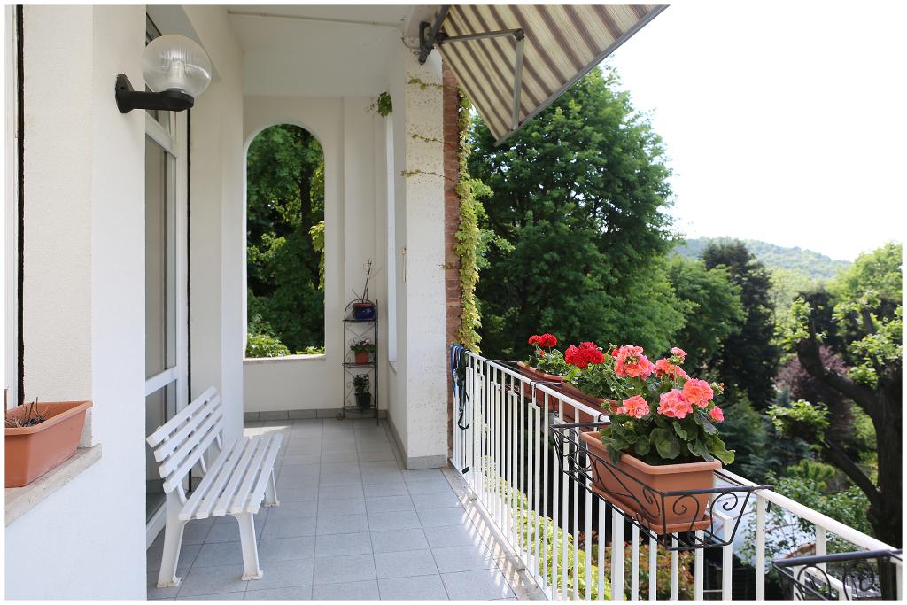 Sulla collina torinese, in contesto residenziale, appartamento in villa di 150 metri quadri con terreno di circa 800 mq. L'immobile è composto da ingresso, grande salone con camino e affaccio su ampio terrazzo, sala da pranzo, cucina con affaccio su balcone verandato, due camere da letto, zona armadi, sala da bagno con box doccia in cristallo e doppi lavelli, lavanderia. Le grandi vetrate del salone regalano all'appartamento una luminosità ed una vista incomparabile.