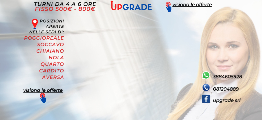 FISSA UN COLLOQUIO ALLO 081204889 OPPURE LASCIA UN CV ALLA MAIL : risorseumane@upgradesrl.net