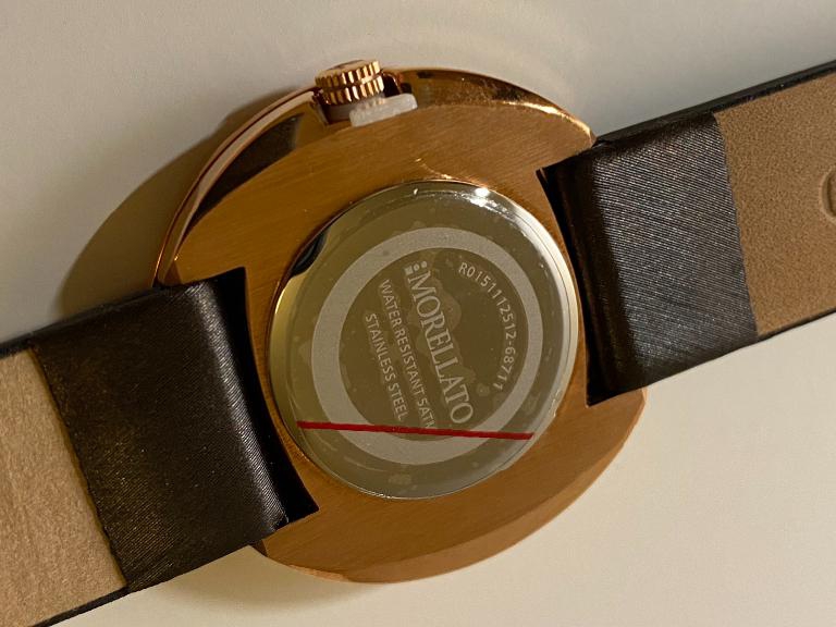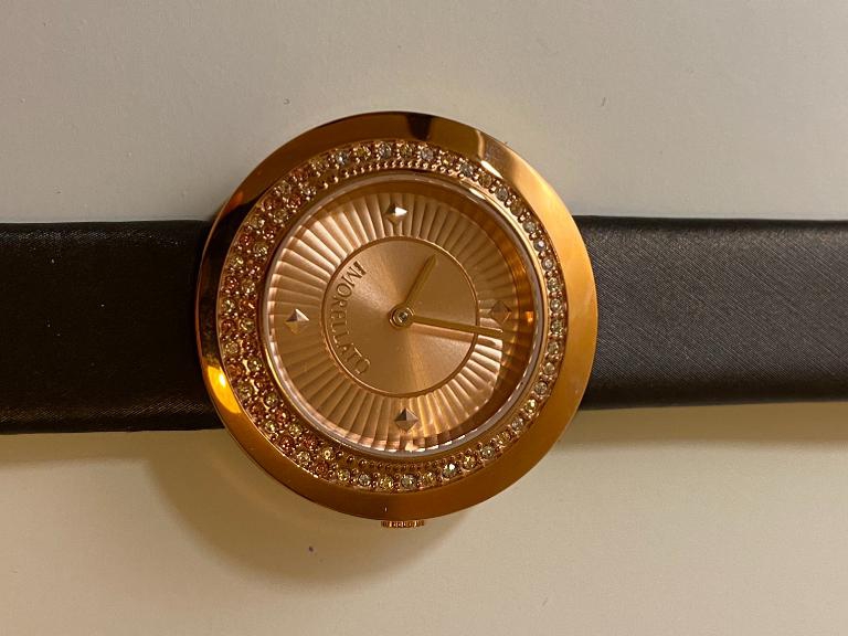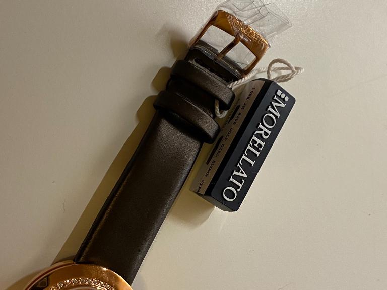 Morellato pietre luna, riferimento numero R0151112512. In acciaio con trattamento di placcatura in oro rosa. Movimento al quarzo. Quadrante con brillanti a spirale. Diametro 34mm,vetro zaffiro e water resistant 3ATM. Cinturino in pelle lunghezza 24cm con chiusura ad ardiglione. Nuovo completo di scatola e documenti.