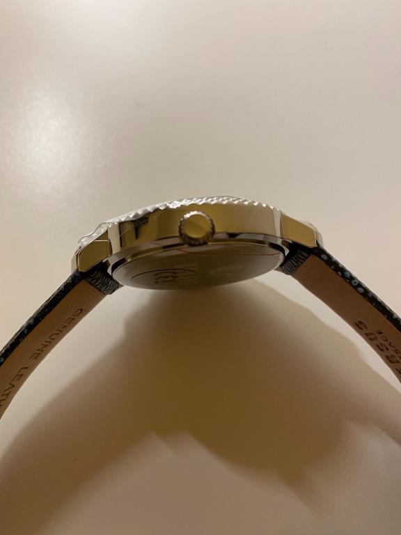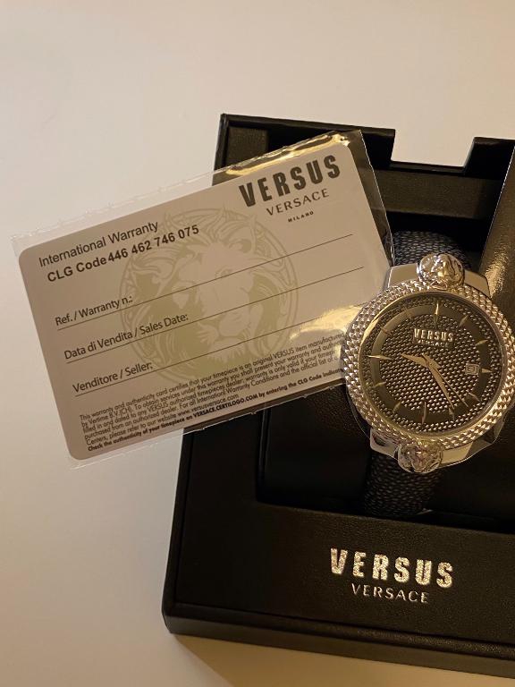 Versus Versace mouffetard,riferimento numero VSPLK0119. In acciaio con movimento al quarzo. Diametro 38mm con datario. Vetro zaffiro e water resistant 5ATM. Cinturino in pelle lunghezza 24cm con chiusura ad ardiglione. Nuovo completo di scatola e documenti.