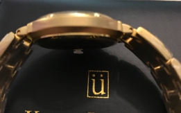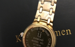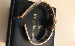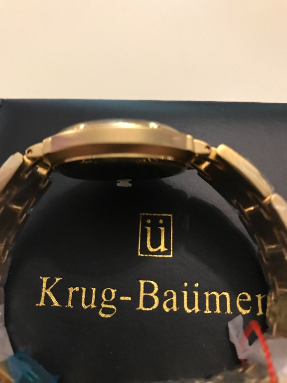 Krug baumen charleston diamond, riferimento numero 5116DM-4D. In acciaio placcato oro con movimento al quarzo. Diametro 33mm con datario e vetro zaffiro. Water resistant 3ATM. Cinturino lunghezza 20cm regolabile a maglie. Nuovo completo di scatola e documenti.
